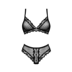 Votre costume comprend un collier et des menottes en dentelles reliées avec des petites chaines. Il comprend également un string ficelle avec une ouverture et un petit soutien-gorge.
