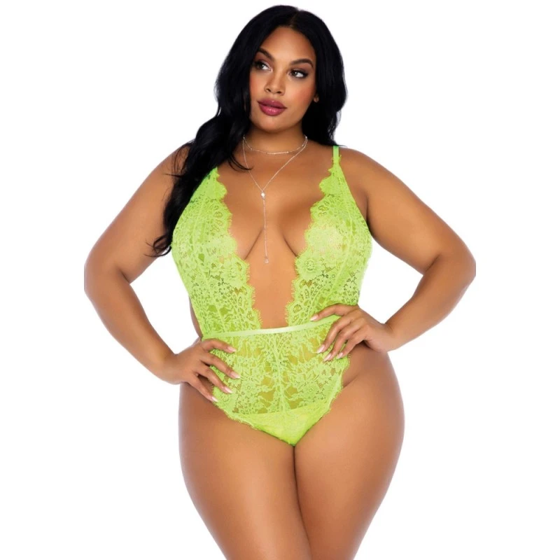 Découvrez le Body & Déshabillé 86112X Dentelle Florale Lime GT de Leg Avenue ! Un ensemble grande taille composé d’un body en dentelle florale et de son déshabillé assorti, parfait pour pimenter vos soirées en amoureux !