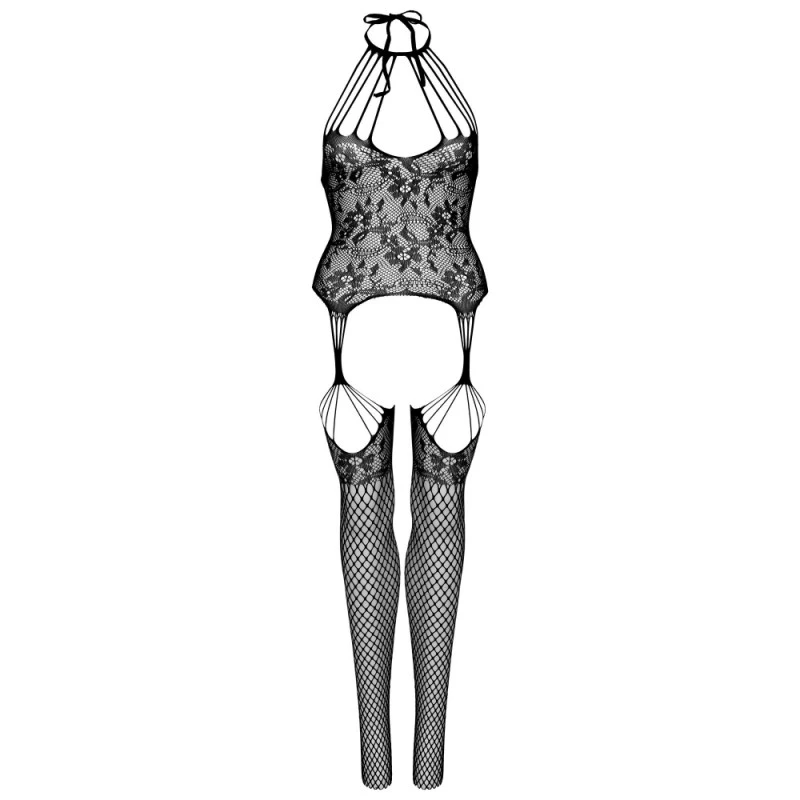 Faites grimper la température avec cette combinaison sexy ! Entièrement en résille, vos atouts seront dévoilés dans un subtil jeu de transparence. Le buste est orné de motifs floraux qui ajouteront une touche sophistiquée à cette pièce de lingerie. Le décolleté est mis en valeur par plusieurs lanières remontant jusqu’au cou. Vous aurez la possibilité de régler le tour de cou à l’aide de la fine lanière sur la nuque.