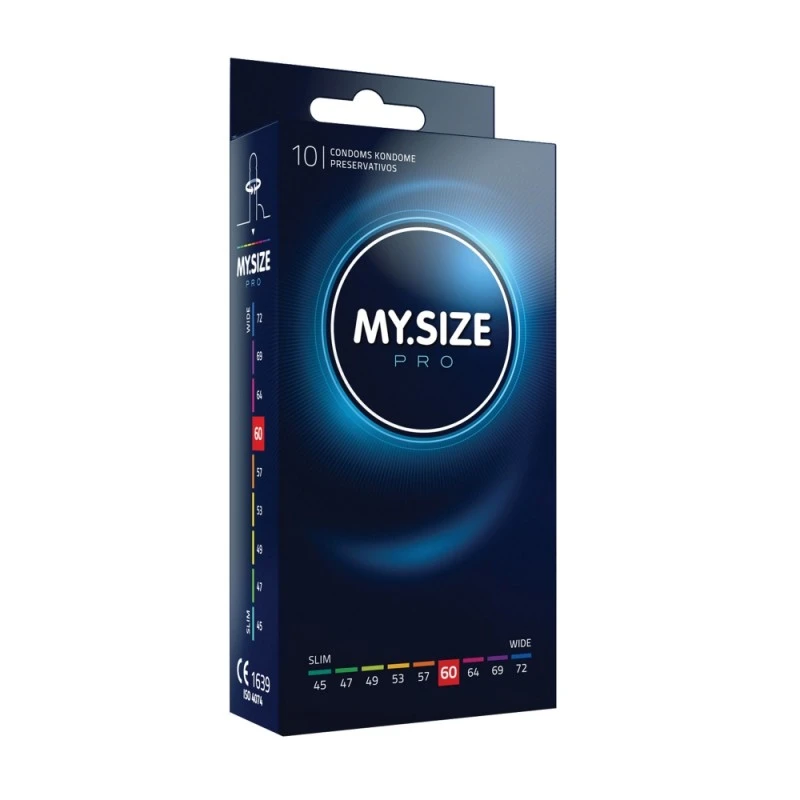 Découvrez la Boîte de 10 Préservatifs MY.SIZE Pro 60 mm, des préservatifs adaptés à votre taille pour vous permettre de profiter de rapports sécuritaires et confortables ! Peu importe votre taille, vous trouverez forcément des préservatifs qui vous conviendront avec MY.SIZE !