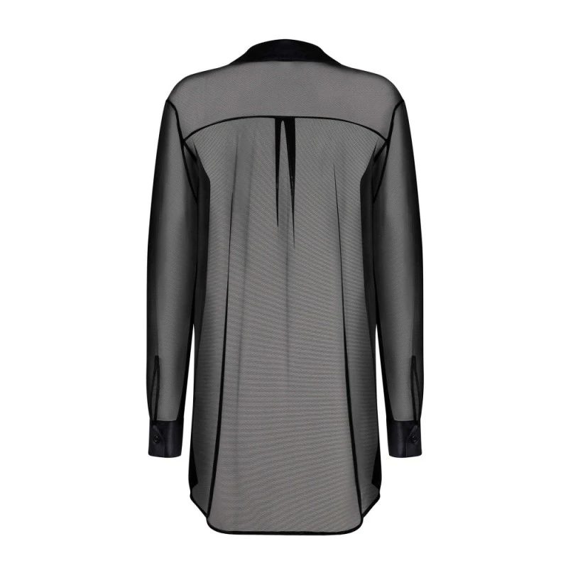 Découvrez la Chemise Transparente Stellya Maille Noire de la marque Obsessive ! Cette chemise transparente noire à maille fine vous donnera un look affirmé très audacieux !