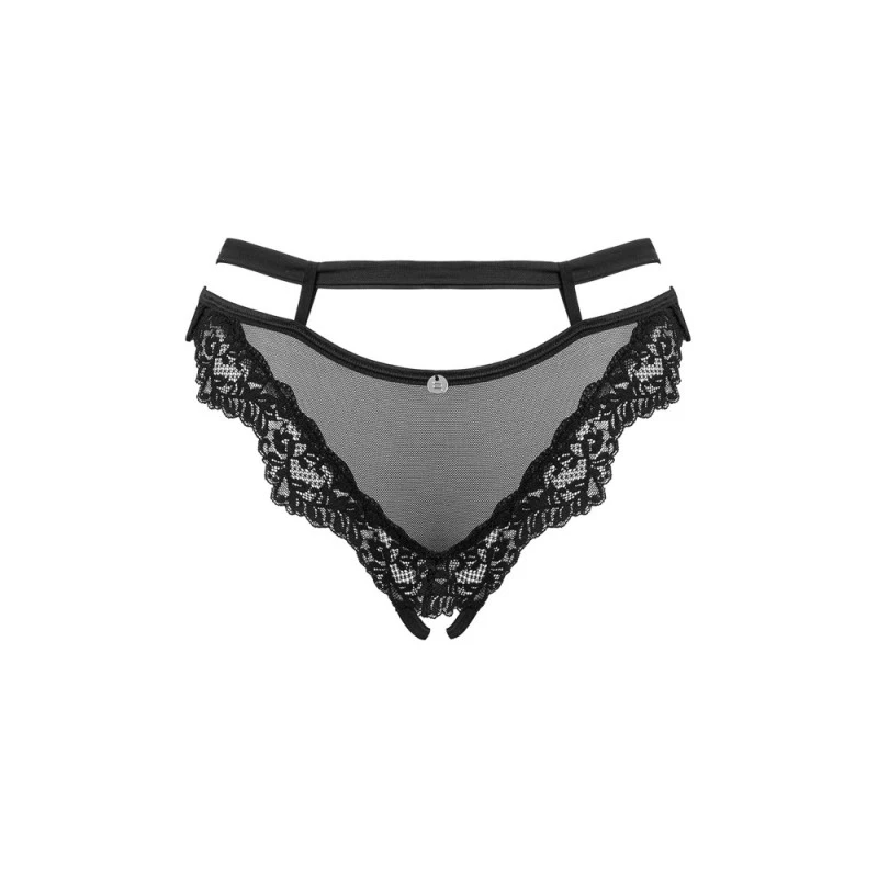 Découvrez le String Ouvert Setilla Maille & Dentelle Noire de la marque Obsessive ! Ce dessous sexy vous donnera une allure romantique à souhait avec sa dentelle fine et son adorable nœud papillon sur la naissance de votre fessier !