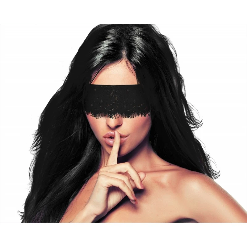 Découvrez le Bandeau Mystère Lace Mask Noir de Ouch! et portez-le pour des jeux BDSM mystérieux !