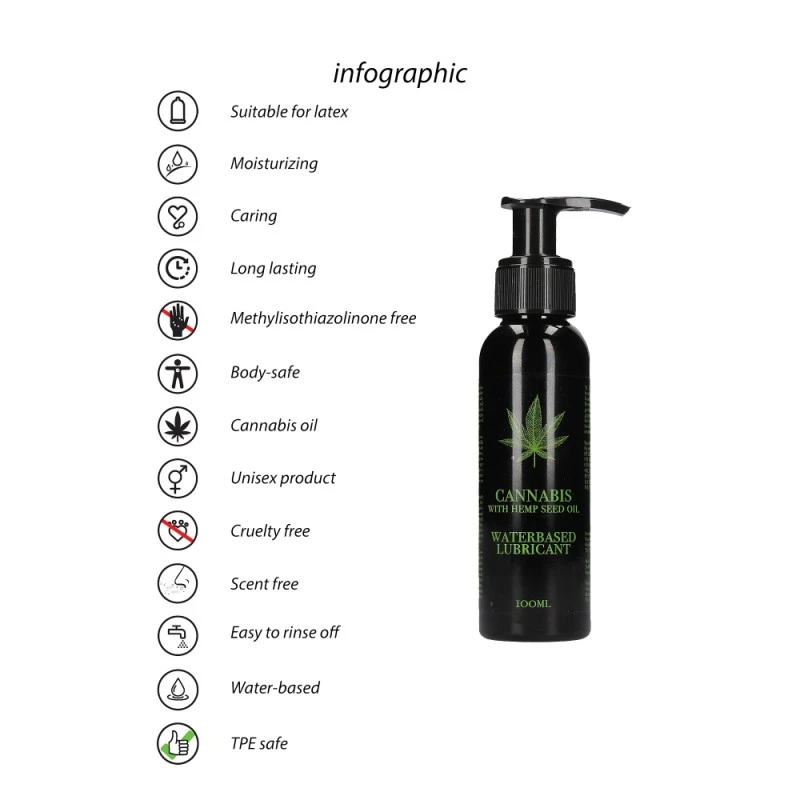 Le Lubrifiant Eau Cannabis Graines de Chanvre 100 ml est inodore, sans parfum de synthÚse, sans parabÚne ni conservateurs. Sa formule respectueuse de votre santé intime vous apportera une hydratation longue durée. Compatible avec tout type de préservatifs et de sextoys.