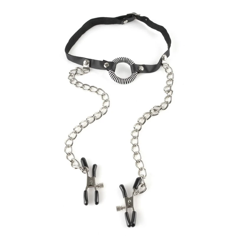 Ce Kit contient un bâillon et des pinces tétonsde la marque Piedream. Punissez votre partenaire et faites-lui découvrir le plaisir de la souffrance. Bandez-lui les yeux pour accentuer les sensations.