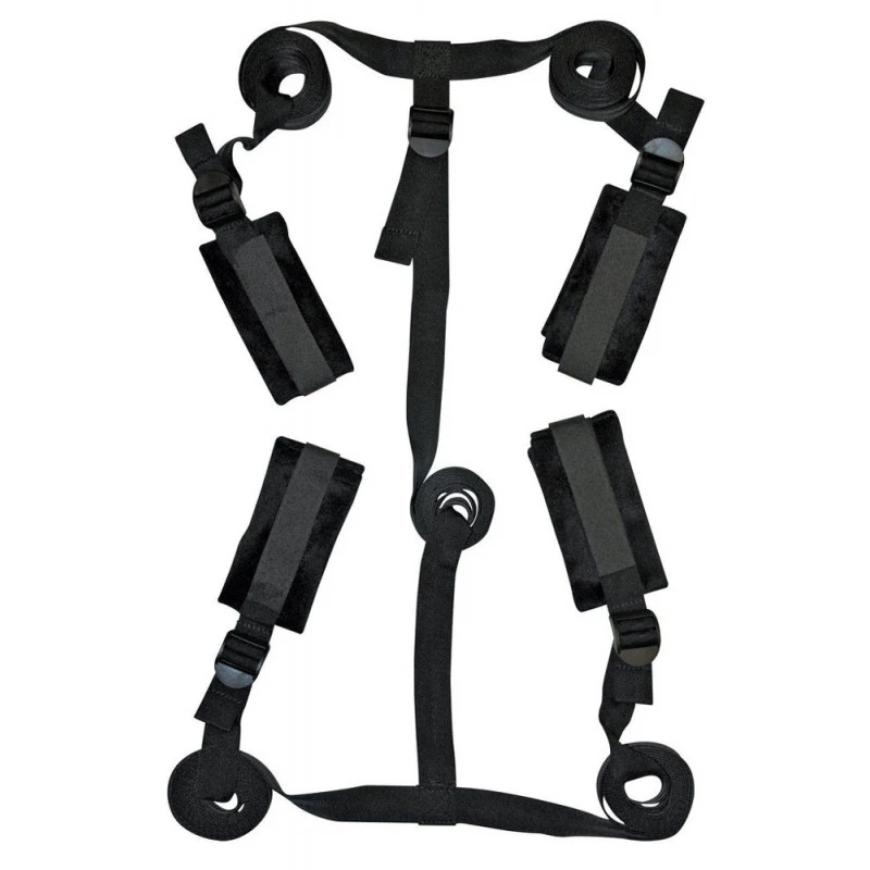 Le Kit d’Attaches de Lit Bondage de Sex & Mischief comprend 4 menottes en tissu solide et confortable, attachées à des sangles ajustables à passer sous votre matelas pour des jeux SM très excitants, pas besoin de barreaux à votre lit !