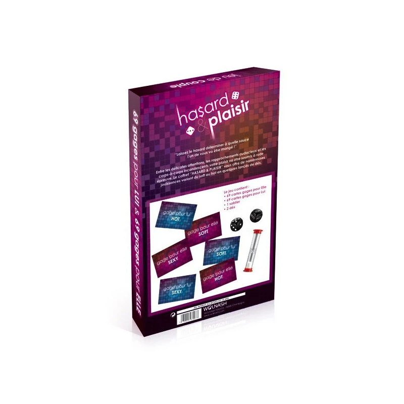 Découvrez le Jeu Coquin Hasard & Plaisir de la marque Wolnash. Jeu pour couple à base de gages à 3 degrés d’érotisme qui ne manquera pas de pimenter votre soirée.